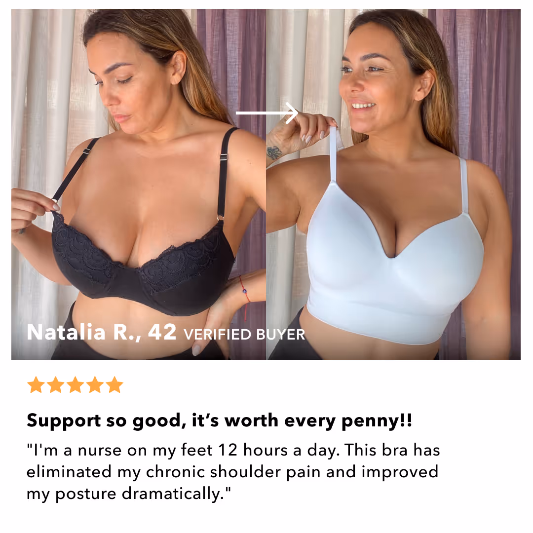 Let me tell you–it DELIVERED. After just a few weeks, I've noticed my shoulder pain is gone, my back looks smooth under fitted tops, and I actually forget I'm wearing a bra throughout the day. (I was so impressed, I immediately ordered more–thank goodness they offer multi-packs!)